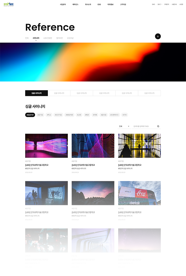 사업분야-레퍼런스는 서로 교차 연결시켜, 각 페이지에서도