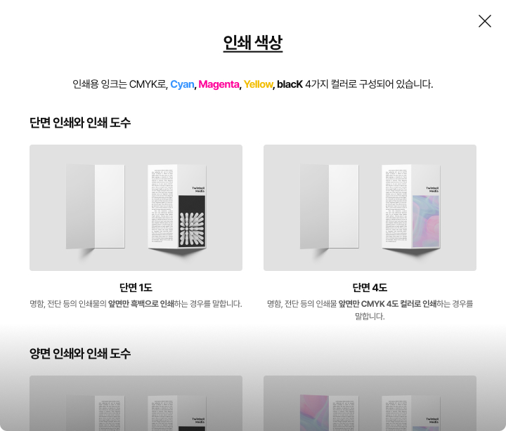 실수를 줄이고 올바른 인쇄 결과물을 받아볼 수 있게끔 안내하는 별도