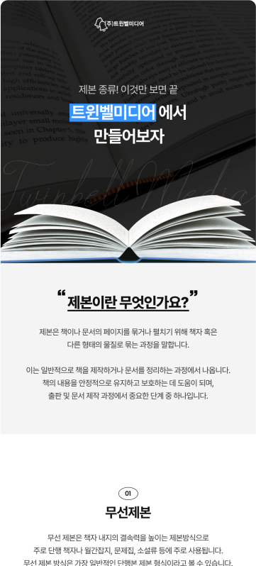 트윈벨미디어는 디지털 인쇄 · 옵셋 인쇄 및 POD / CTP 출력, 제본 · 제책 등