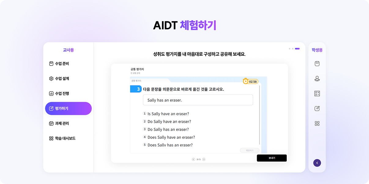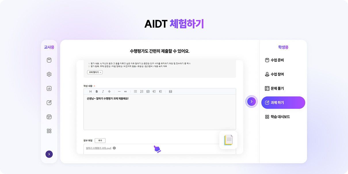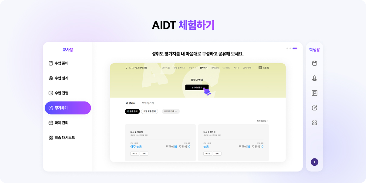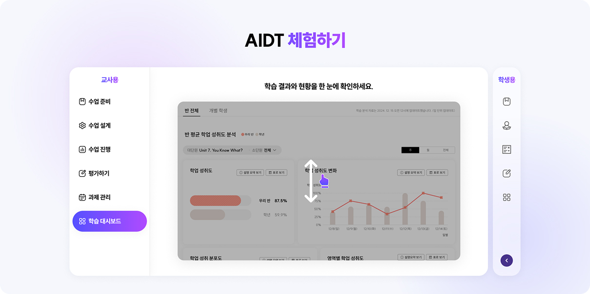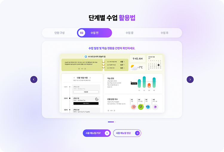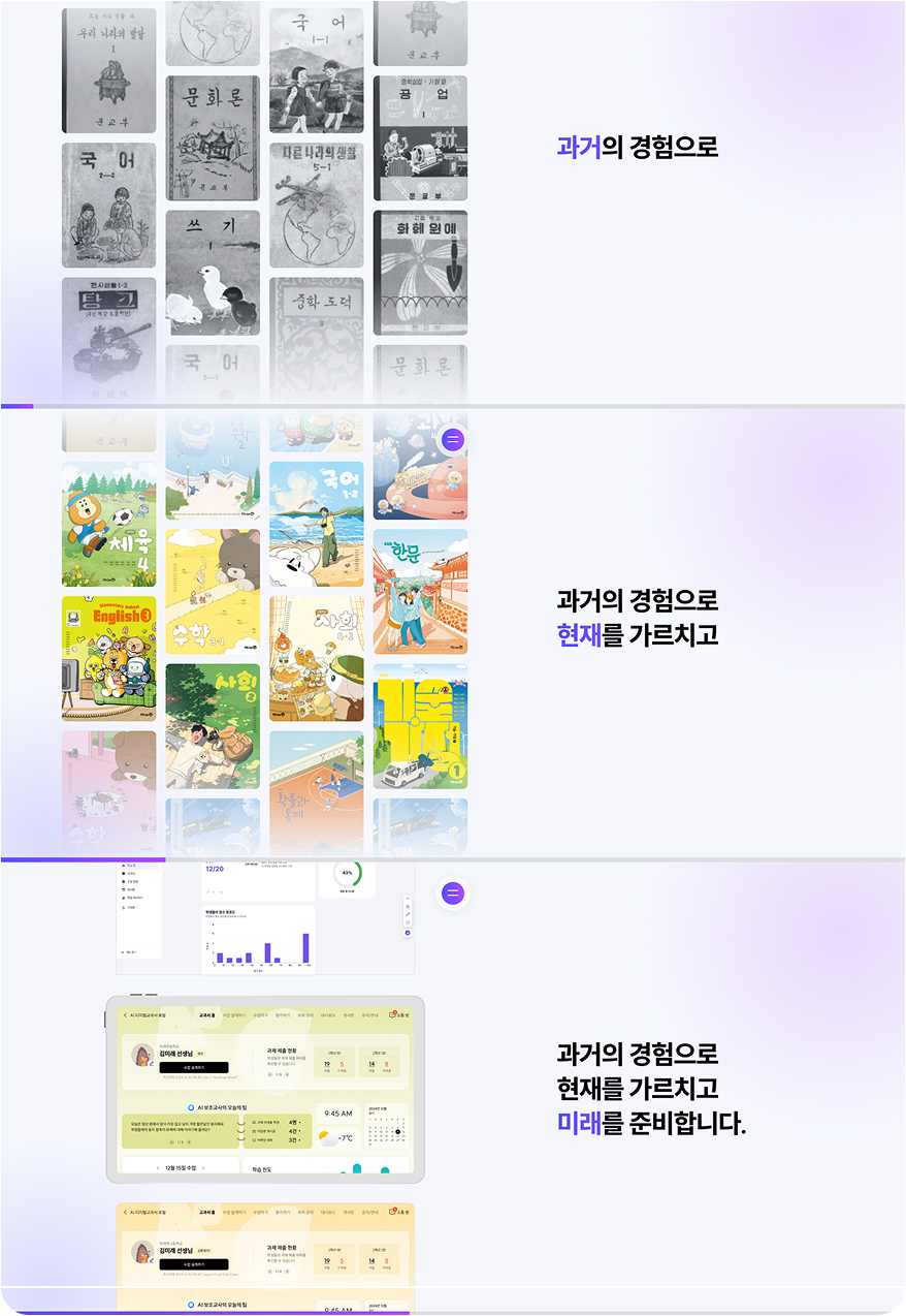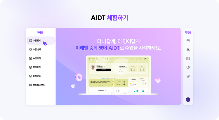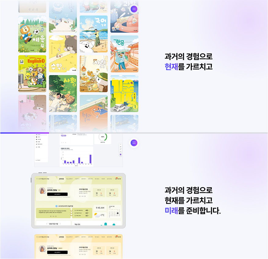 명확하고 직관적인 레이아웃과 밝은 분위기로 AI 디지털교과서가 만들어내는 가능성과 신뢰감을 표현합니다.