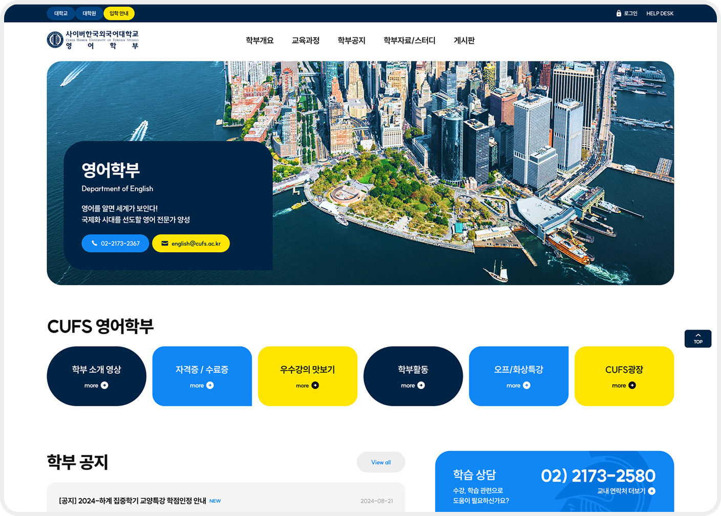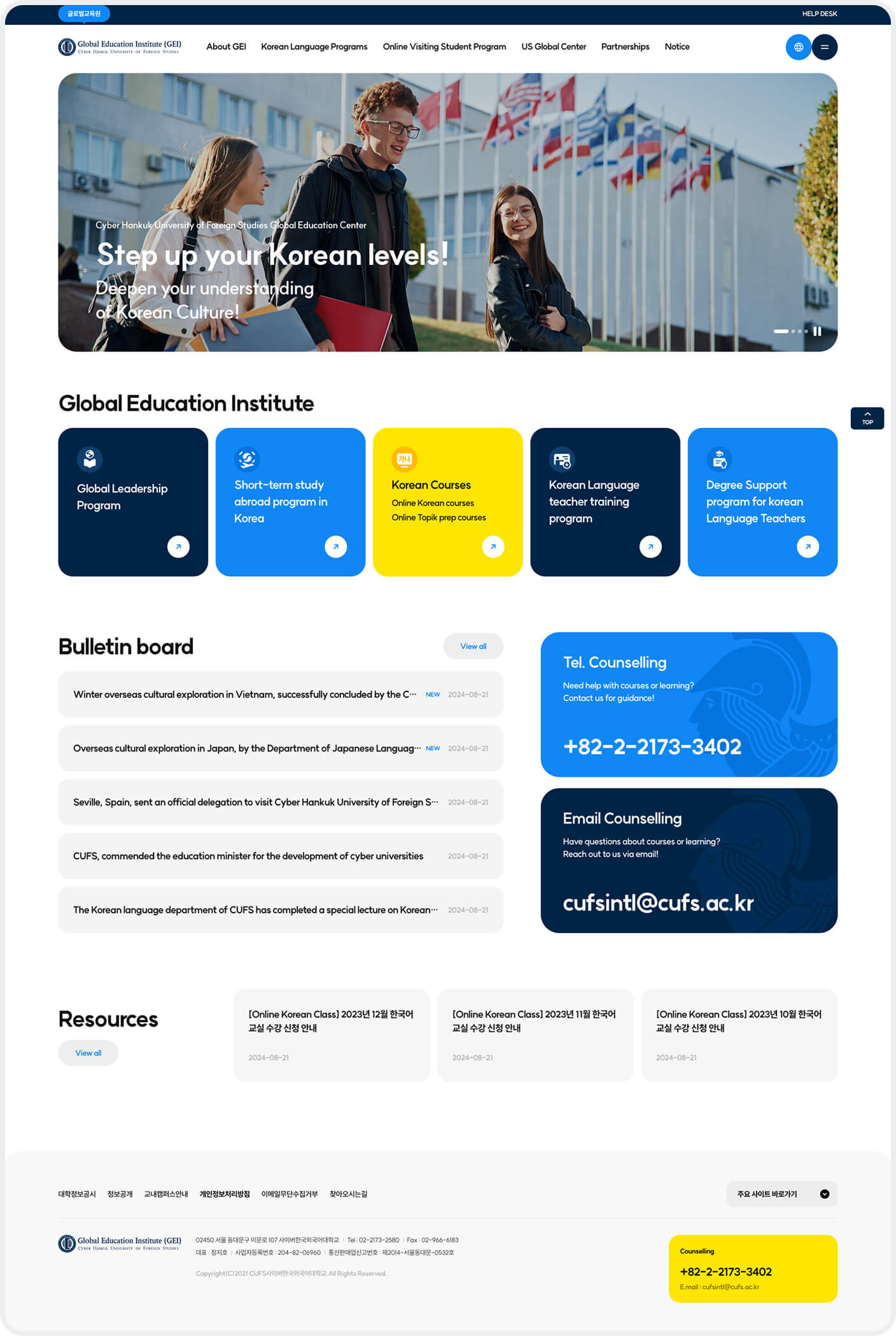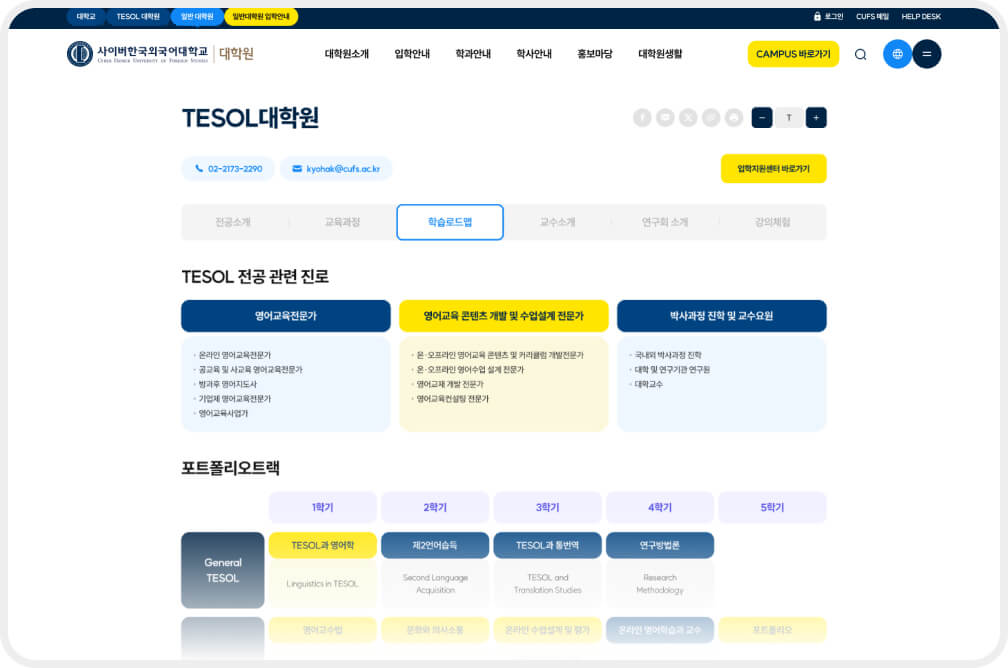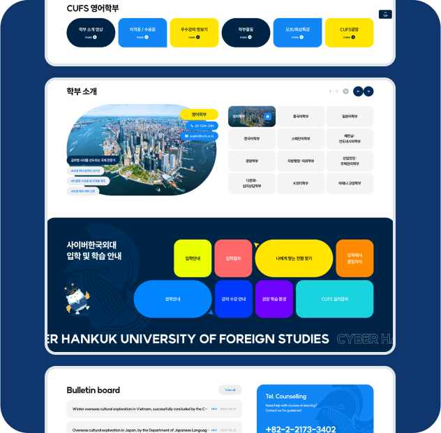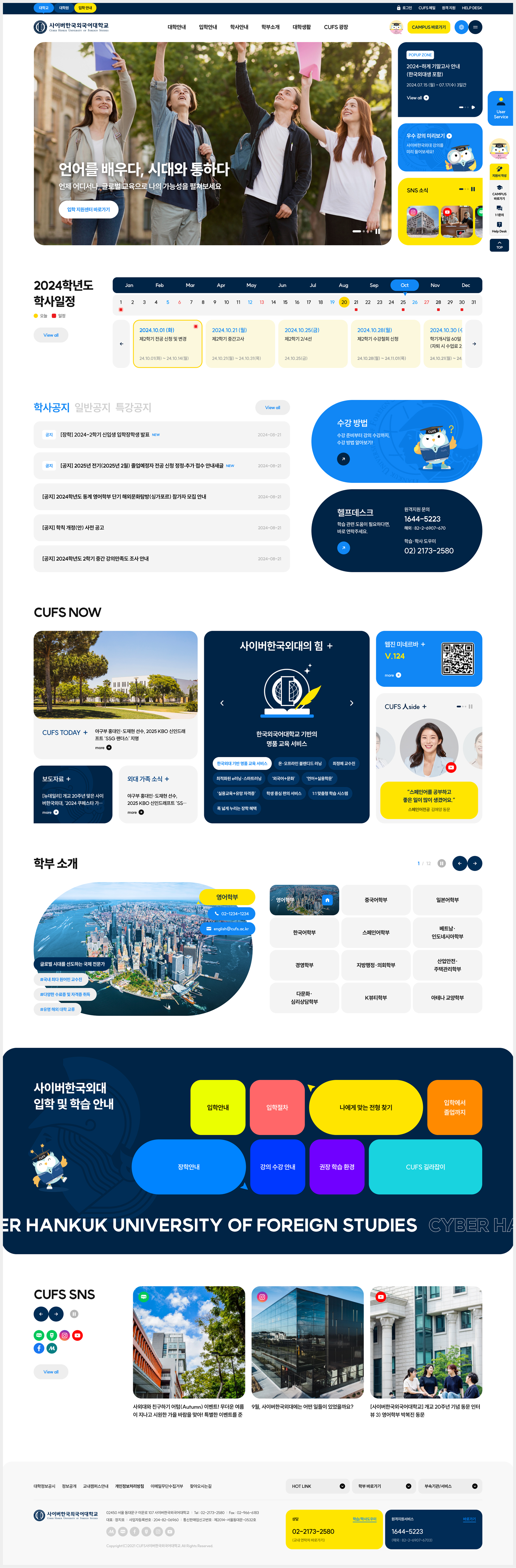 사이버한국외국어대학교 및 그 산하 기관 웹사이트 전반에 걸쳐 진행된 전면 리뉴얼 프로젝트를 스케치북과 함께하였습니다.