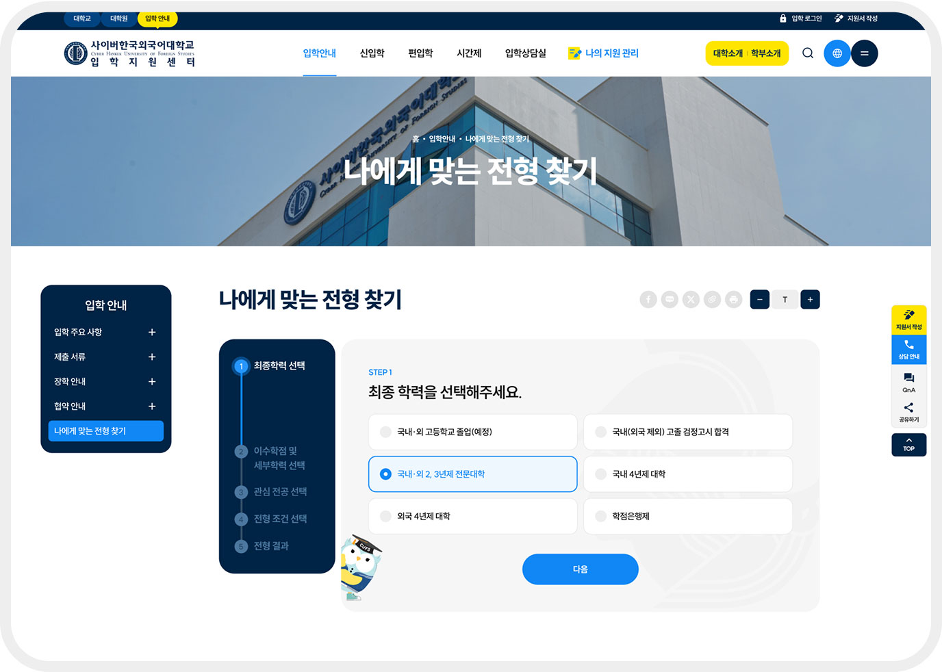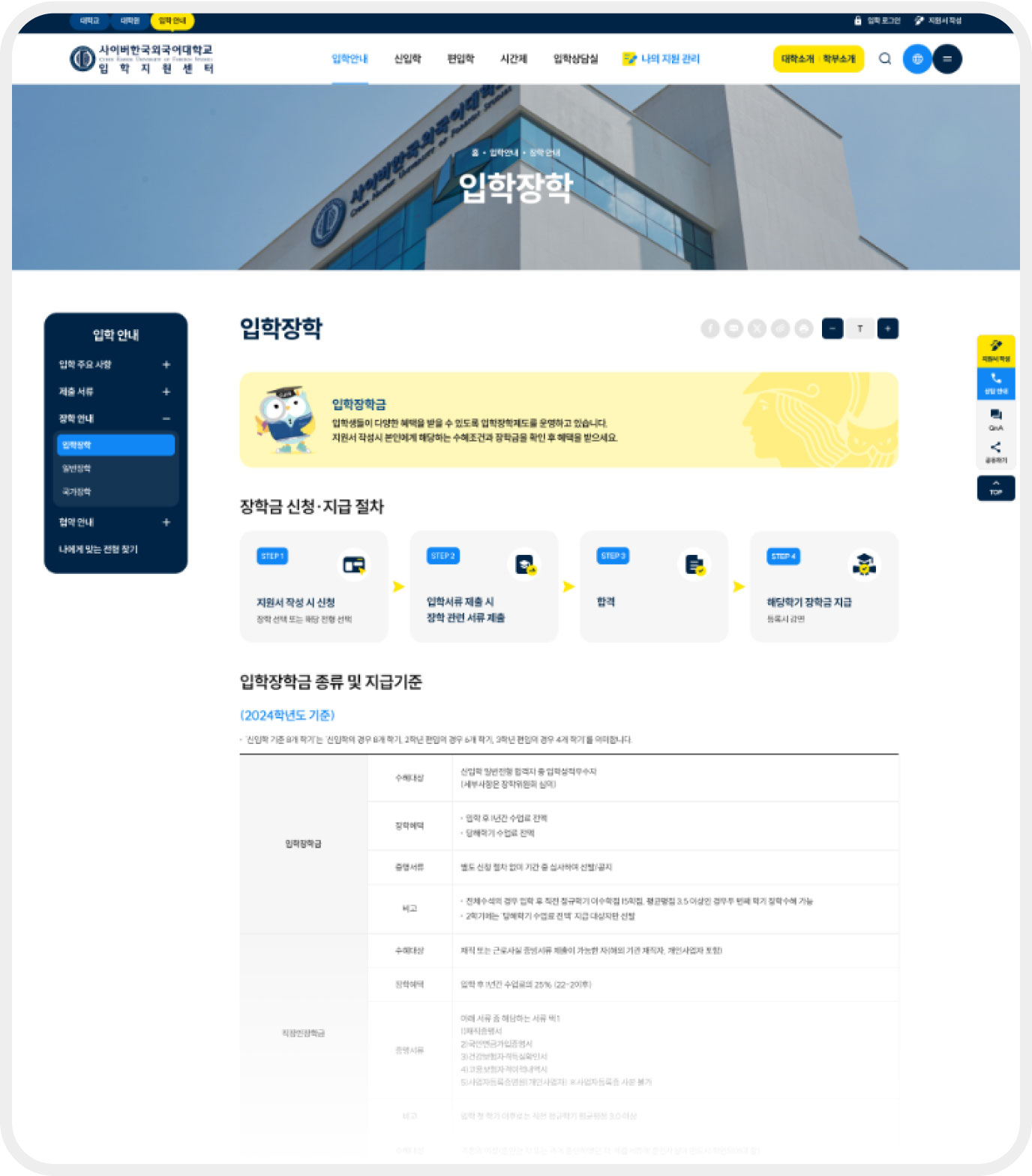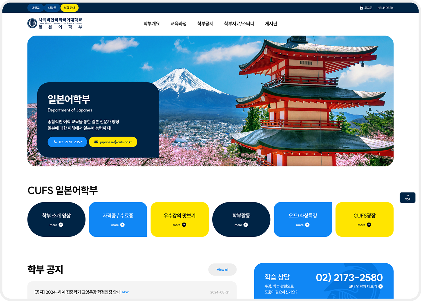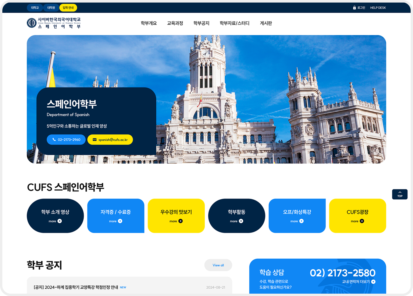 더 따뜻하고 친근한 이미지로 다가가고 싶어요.기존 사이트 간 디자인 편차를 줄이고, 사이버한국외대만의 브랜드 톤을 유지하고 싶어요.