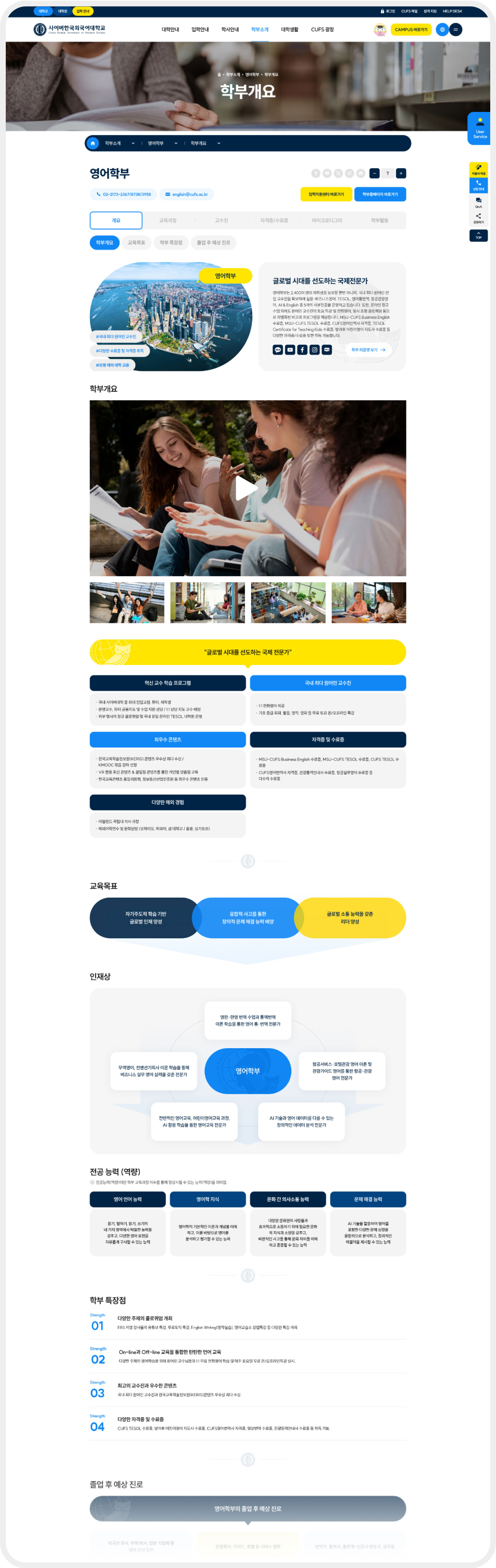 CUFS의 정체성을 공유하며, 전공별 정보를 한눈에 탐색할 수 있도록 설계된