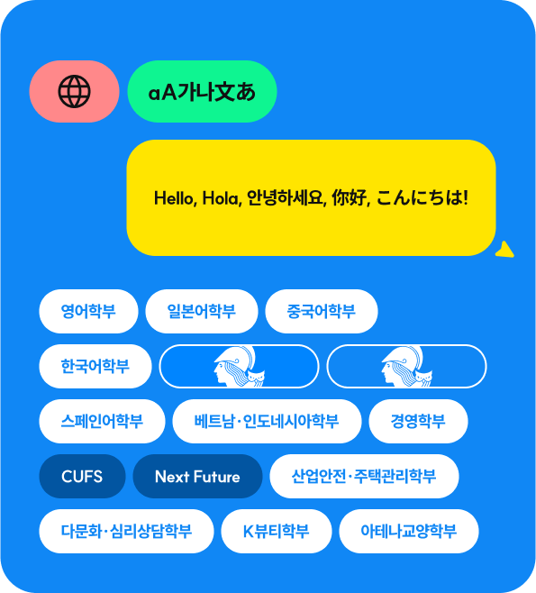 두 요소를 결합해, 외국어 특성화 사이버대학만의 시각 언어를 구축했습니다.